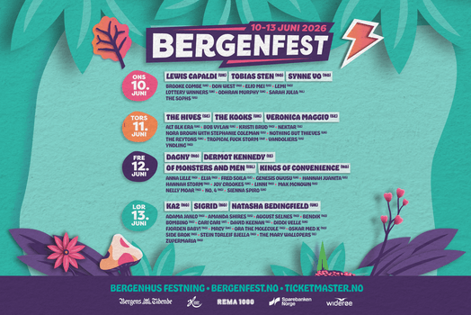 Verdensstjerner og bergensartister side om side! Endelig slipper vi komplett lineup til Bergenfest 2026 med både internasjonale publikumsfavoritter – og en solid dose vestlandsk egenart.