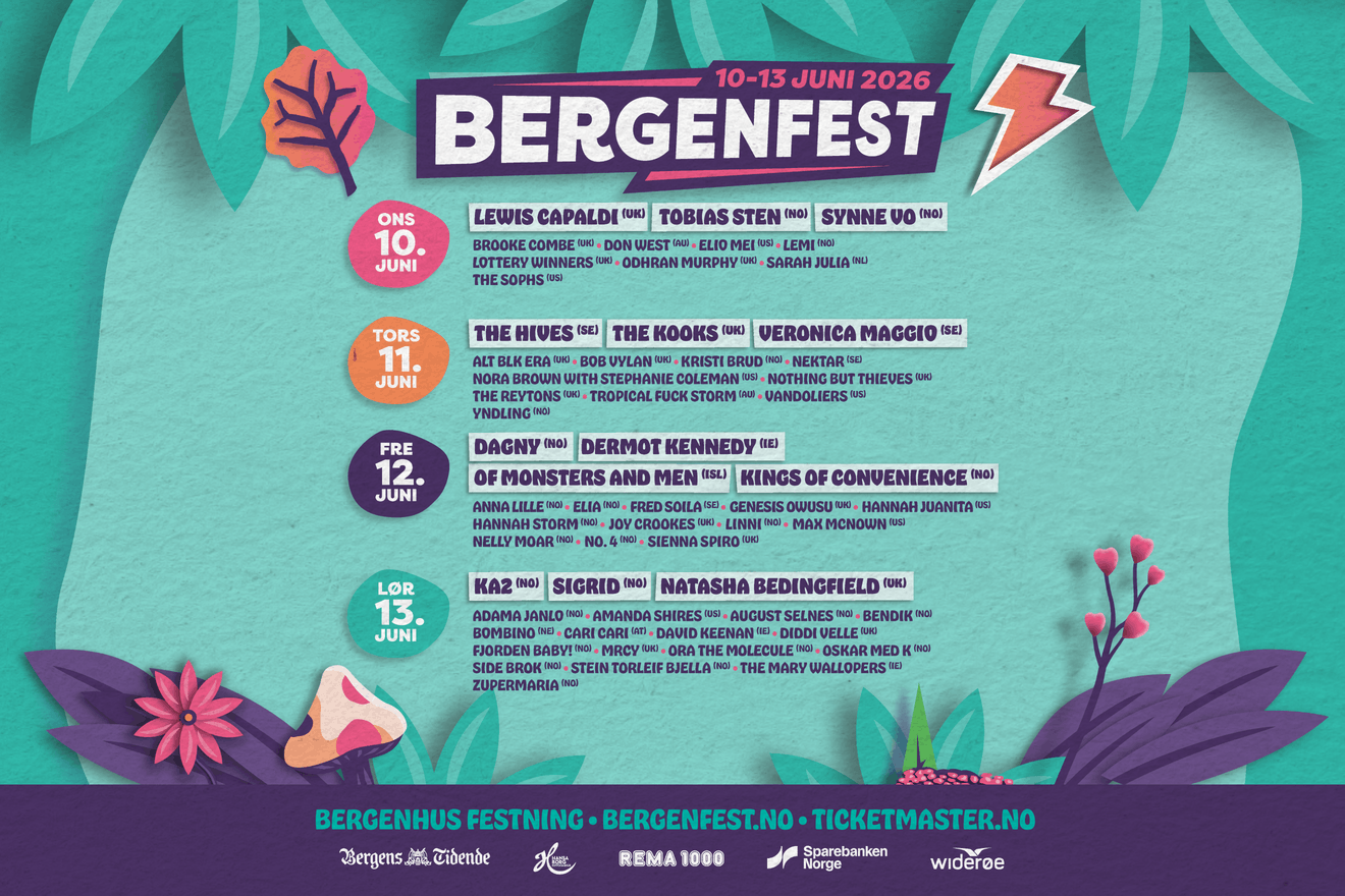 Verdensstjerner og bergensartister side om side! Endelig slipper vi komplett lineup til Bergenfest 2026 med både internasjonale publikumsfavoritter – og en solid dose vestlandsk egenart.