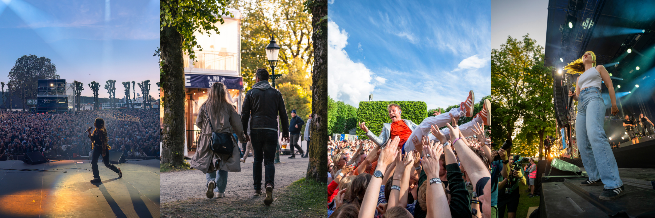 Festivalområdet byr i tillegg på mer enn musikk. Her finner du handlegate, festivalstyling, gatemat og et bredt utvalg sittegrupper – fra skygge under mektige trær til åpen gresslette og sosiale områder rundt teltene til aktører som Widerøe og Sparebanken Norge. Stemningen på Bergenfest kan ikke forklares, den må oppleves!