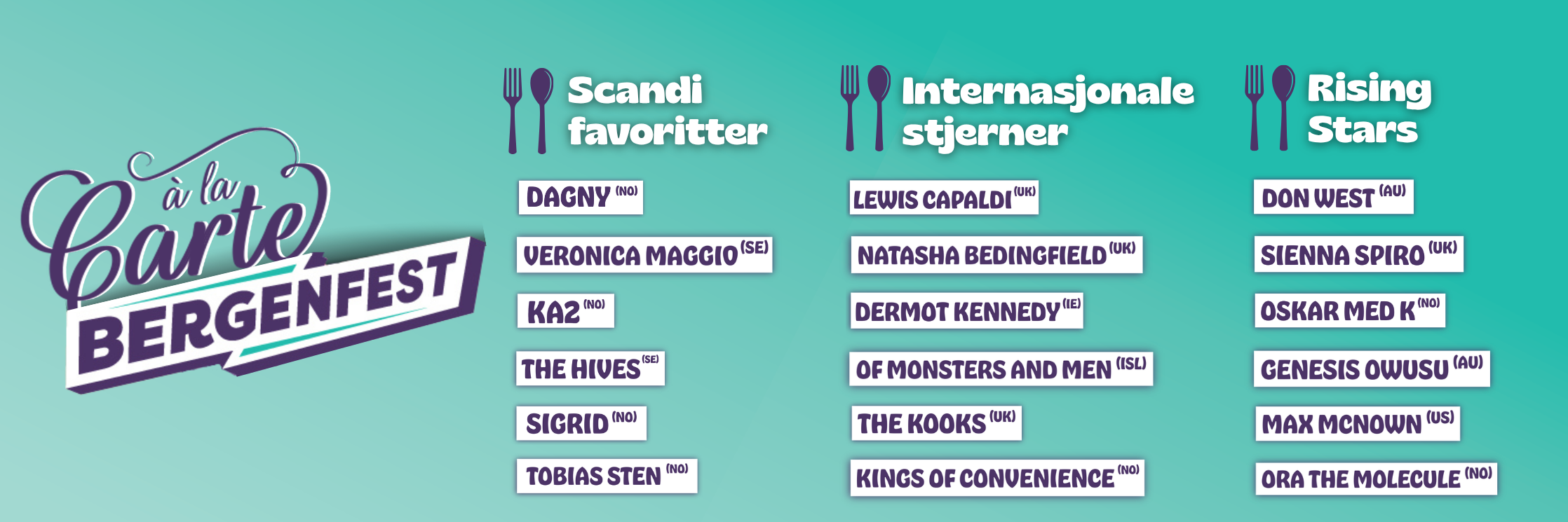 Vi er kanskje en smule inhabil, men årets lineup er faktisk ganske så rå, og med hele 61 artister på plakaten lover vi liveopplevelser som treffer både for musikknerder og tilfeldige festivalgjengere. Hvilke artister velger du fra Bergenfest-menyen?